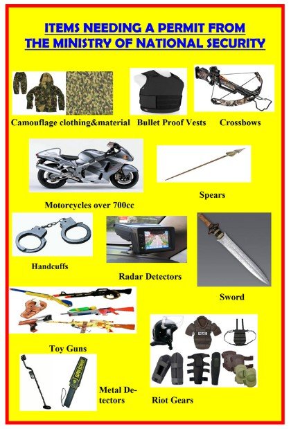 Please find listed below items for which permits are required, this list is not exhaustive. Items are added and taken off as the Government dictates.